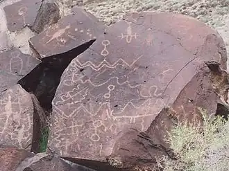 - ↑ «Greaser Petroglyph Site» Архивная копия от 4 июля 2009 на Wayback Machine, National Register of Historic Places, www.nationalregisterofhistoricalplaces.com, 19 January 2009.