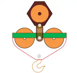 Они состоят из двух щёк — литых или из листового металла, между которыми на осях вращаются канатные блоки. В нижней части щёк траверсой закреплён грузовой крюк[3].