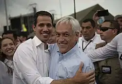 Хуа́н Хера́рдо Гуайдо́ Ма́ркес (исп. Juan Gerardo Guaidó Márquez; род. 28 июля 1983, Ла-Гуайра, Венесуэла) — венесуэльский государственный деятель, политик. 5 января 2019 года стал председателем Национальной ассамблеи Венесуэлы; с 5 января 2020 года по 5 января 2023 года должность оспаривалась между Гуайдо и Луисом Паррой[1]. С 5 января 2020 года по 5 января 2023 года возглавлял непризнанное большинством стран временное правительство Венесуэлы, под контролем которого находились здания дипломатических миссий в США.