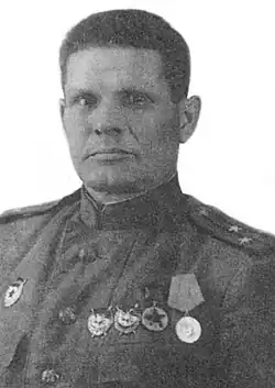 - 1 2 3 4 5 6 7 Великая Отечественная. Комдивы : военный биографический словарь / [Д. А. Цапаев и др. ; под общ. ред. В. П. Горемыкина] ; М-во обороны Российской Федерации, Гл. упр. кадров, Гл. упр. по работе с личным составом, Ин-т военной истории Военной акад. Генерального штаба, Центральный архив. — М. : Кучково поле, 2014. — Т. III. Командиры стрелковых, горнострелковых дивизий, крымских, полярных, петрозаводских дивизий, дивизий ребольского направления, истребительных дивизий (Абакумов — Зюванов). — С. 749—751. — 1102 с. — 1000 экз. — ISBN 978-5-9950-0382-3.