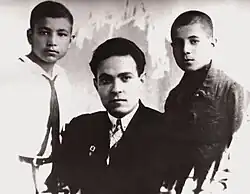 На фотографии изображены (слева направо) Хакимли, Гусейнзаде. Крайний справа по одним данным — Сеидов[78], по другим — брат партизанки Саввы[79]
