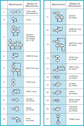 Графическая система Р-технологии программирования закреплена в стандартах ГОСТ 19.005—85[59], ГОСТ Р ИСО/МЭК 8631—94[60] и международном стандарте ISО 8631Н.