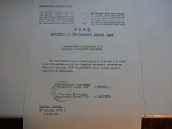 - ↑ Указ Президиума Верховного Совета СССР от 30 августа 1971 года