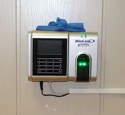 Биометрический терминал со сканером отпечатков пальцев, предназначенный для учёта рабочего времени