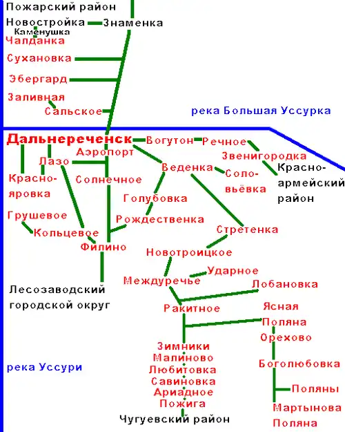 В Дальнереченском районе 29 населённых пунктов[32]:
