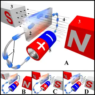 Оригинальный текст (англ.)if the current of electricity in a fixed conductor is itself attracted by a magnet, the current should be drawn to one side of the wire, and therefore the resistance experienced should be increased.