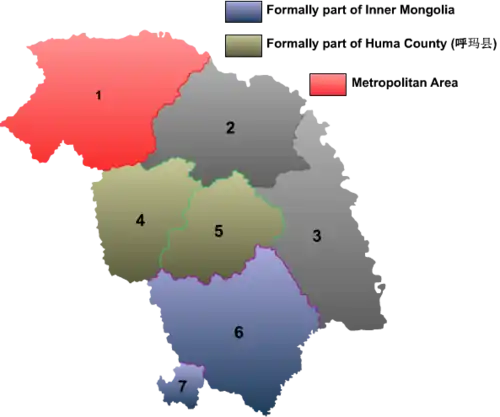 После Синьхайской революции эти земли находились в составе провинции Хэйлунцзян, на территории к северу от Большого Хинганского хребта были образованы три уезда.