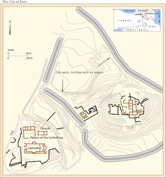 Двин, Востан Двин (арм. Դվին; араб. دبيل (Дабиль), перс. دوين (Двин), др.-греч. Δούβιος или др.-греч. Τίβιον) — крупный ремесленно-торговый город, столица Армении c V-го по IX век, в области Востан Хайоц провинции Айрарат центральной Армении[1]. Столица Марзпанской Армении[2]. С V века в Двине находился престол армянского католикоса[3].
