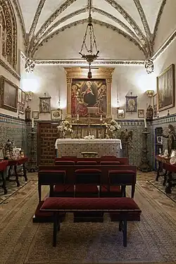 Сад во внутреннем дворе, разделённый на четыре части в соответствии с традиционным исламским стилем, включает в себя выложенные плиткой дорожки и центральный фонтан[9]. Лимонные деревья и фонтан — часто повторяющиеся символы в поэзии Мачадо[10]. За садом расположен двор, окружённый арками с колоннами из белого мрамора. Арка, расположенная к западу от двора в нижних галереях, открывает доступ к зданию, которое использовалось в качестве дворцовой часовни. Часовня XV века плохо сохранилась из-за многочисленных реконструкций[2]. Её алтарь содержит несколько плиток с металлическими отражениями, типичными для севильской керамики XVI века.