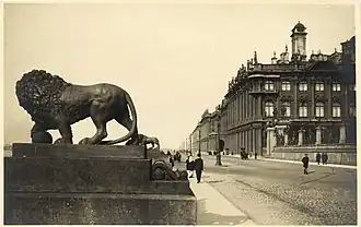 - ↑ Пятый канал. На Адмиралтейскую набережную Петербурга вернулся медный лев (Лента новостей). Культура. Сайт пятого канала. Дата обращения: 25 ноября 2008. Архивировано 16 апреля 2013 года.