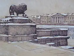 Другой проект сохранился в отделе эстампов Государственной Публичной библиотеки имени М. Е. Салтыкова-Щедрина. Он представляет собой рисунок неизвестного художника, изображающий пристань с двумя парами лежащих львов[10].