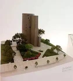 На фасаде башни со стороны входа находится вставной камень с надписью, которая сделана куфическим почерком. Она гласит: «Башня Масуда, сына Давуда»[2].