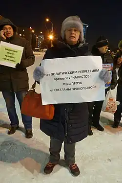 - ↑ В Москве журналисты провели пикеты в поддержку Светланы Прокопьевой. Радио Свобода. Дата обращения: 21 апреля 2020. Архивировано 27 декабря 2019 года.