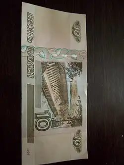 Банкнота достоинством 10 рублей образца 1997 года, модификация 2001 года
