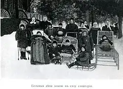 Лечение в санаториях сочеталось с учебными занятиями в школе с 9 часов утра до 17 часов вечера. Было шесть групп детей. Изучали математику, русский язык, историю, географию, Закон Божий. До 1917 года профиль санатория не менялся. После 1917 года в санаторий принимались дети больные костным туберкулёзом. Санаторий назывался: