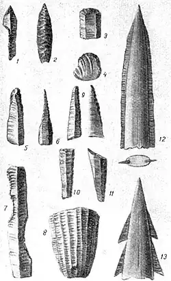 В обработке камня кельтеминарцы достигли большого совершенства. Они умели искусно расщеплять кремень, отделяя от специально подготовленного массивного ядрища — нуклеуса — тонкие и длинные пластинки с очень острыми параллельными краями. Археологи называют их ножевидными пластинами. Обрабатывая затем эти пластины («ретушируя»), снимая по краям тонкие и мелкие чешуйки кремня, они могли придать им любую форму, притуплять или заострять любой край. Так изготовлялись наконечники стрел, скребки, сверла, проколки и многое другое. Для различных целей употреблялись и необработанные ножевидные пластинки.