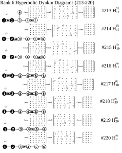 - ↑ L Carbone, S Chung, C Cobbs, R McRae, D Nandi, Y Naqvi, D Penta. Classification of hyperbolic Dynkin diagrams, root lengths and Weyl group orbits // J. Phys. A: Math. Theor. — 2010. — Вып. 43.