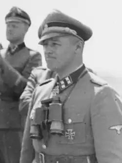 С 22 июня 1941 года — участвовал в войне Германии против СССР, командир 1-го батальона полка СС «Германия» (SS-Regiment Germania) дивизии СС «Викинг», в звании штурмбаннфюрера (майор). В августе 1941 — в боях на Украине ранен, остался в строю.