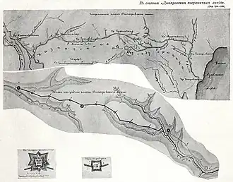 В 1769 году было поручено генерал-поручику Деденеву составить проект пограничной линии которая прикрыла бы Украину от Азовского моря до Днепра.