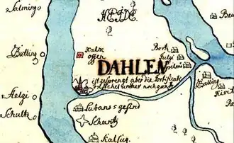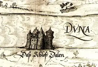 - Остров Долес впервые упоминается в 1226 году, когда был пожалован вассалу Иоганн фон Долену и на нём под его указом был построен замок «Вецдоле», разрушенный через 2 года.