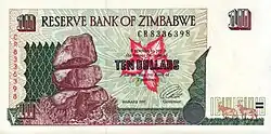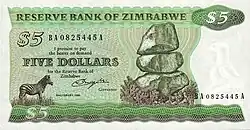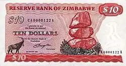 Зимбабвийский доллар (англ. zimbabwean dollar), или доллар Зимбабве[2] (англ. zimbabwe dollar) — денежная единица государства Зимбабве, заменившая родезийский доллар. Обмен денежных знаков производился в отношении 1:1. Один зимбабвийский доллар формально равен 100 центам.