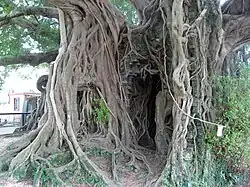 По прошествии времени среди ветвей по-прежнему можно разглядеть обломки кирпичной стены, а когда-то отчётливо можно было увидеть китайскую плетёную дверную раму. Одна часть стороны стволов старого дерева удивительно ровная — вплоть до того, что имеет изгибы под прямым углом, придающие необычный облик, наподобие деревянной поперечной балки; вероятно, причиной этого является то, что ветви первоначально обвивали постройку словно щупальца осьминога, что и привело к таким эффектам, и впоследствии обхватили её кирпичи, поэтому сегодня в облике старых ветвей всё ещё можно едва уловимо заметить очертания контуров постройки, что очень необычно.