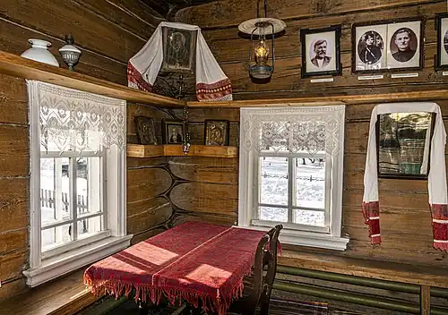 В сенях дома размещена экспозиция, посвященная труду и быту крестьянства конца 19-го начала 20-го века.