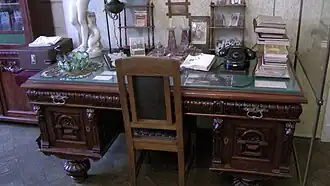 Гостиная и одновременно рабочий кабинет Александра Арбузова[Прим 4] — место вечернего собрания всей семьи академика[42]. Александр Арбузов не имел отдельного кабинета. В гостиной возле двери стоит массивный рабочий стол, за которым он и занимался домашними делами. Академик считал, что занятия наукой должны ограничиваться рабочим временем и лабораторией, дом же, по его мнению, существует для отдыха[17]. Он говорил: