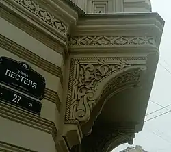 | Вид с угла улиц Пестеля и Короленко. По улице Короленко (слева) часть дома со старой, более темной окраской | |