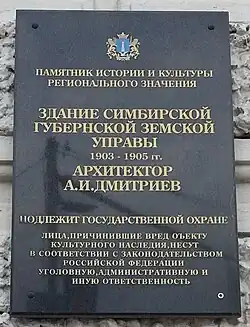- ↑ Сводный список объектов культурного наследия города Ульяновска. Дата обращения: 23 января 2025. Архивировано 3 января 2024 года.