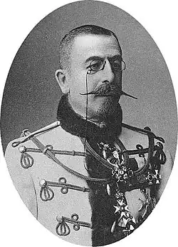 По окончании Николаевского кавалерийского училища в 1886 году, выпущен был корнетом в лейб-гвардии Гусарский Его Величества полк. Несколько раз временно командовал эскадроном полка, был награждён чинами поручика (1890) и штабс-ротмистра (1891). В 1892 году вышел в запас гвардейской кавалерии. 12 сентября 1895 года вернулся на службу и был назначен адъютантом и управляющим двором князя Г. М. Романовского, герцога Лейхтенбергского, в каковой должности состоял до 23 августа 1906 года. Произведен в ротмистры 6 декабря 1897 года, в полковники — 6 декабря 1901 года.