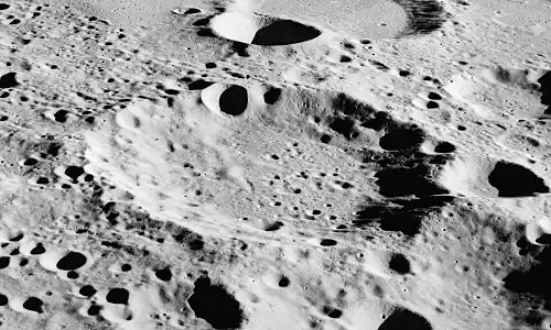 ![]() Снимок зонда Lunar Reconnaissance Orbiter. Кратер Доннер в центре снимка. | |
