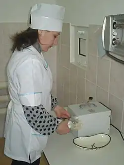 - При ручном плазмаферезе кровь забирается в стерильный пакет (как при обычной процедуре кроводачи), центрифугируется, разделяется на эритроцитарную массу и плазму с использованием плазмоэкстрактора, после чего эритроцитарная масса возвращается донору. Объём циркулирующей крови восполняется введением адекватного количества физиологического раствора.