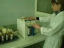 - При автоматическом плазмаферезе донор через специальную систему подключается к сепаратору, забирается кровь полностью, потом она разделяется на плазму и форменные элементы, и далее форменные элементы возвращаются донору обратно в кровь. В зависимости от аппарата объём однофазно забираемой крови может быть разным, однако он всегда гораздо меньше того объёма, который забирается с помощью центрифужного (дискретного) метода, обычно от нескольких десятков мл до 300 мл. Время возвращения однофазно взятого объёма крови тоже различается в зависимости от аппарата и может быть от нескольких секунд до нескольких минут. Похожим способом происходит очистка крови методом каскадной фильтрации плазмы.