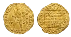 Особенностью денежного обращения Нидерландов являлось наличие нескольких центров эмиссии. Каждая из провинций чеканила собственную монету. Первые дукаты отчеканили в XV столетии, когда голландские земли находились под управлением Габсбургов[52]. После того, как в 1581 году появилась независимая Республика Соединённых провинций, дукаты стали основной золотой монетой государства. Внешний вид монеты оставался в целом неизменным на протяжении многих столетий. На аверсе изображён воин с мечом в правой руке и пучком из стрел — в левой. По краю помещена надпись «CONCORDIA RES PARVAE CRESCUNT»[52], представляющая собой часть афоризма древнеримского историка Гая Саллюстия Криспа «Concordia parvae res crescunt, discordia maximae dilabuntur» (рус. Согласием малые государства укрепляются, от разногласия величайшие распадаются).