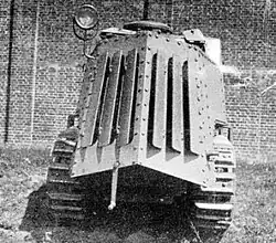Трансмиссия — механическая, включавшая конусную главную фрикционную муфту, трёхступенчатую коробку передач, коническую главную передачу, две бортовые фрикционные муфты и два бортовых редуктора[1].