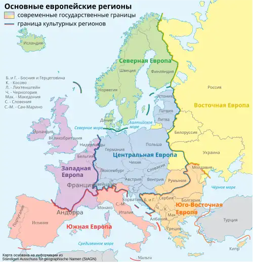 - Основная статья: Регионы Европы