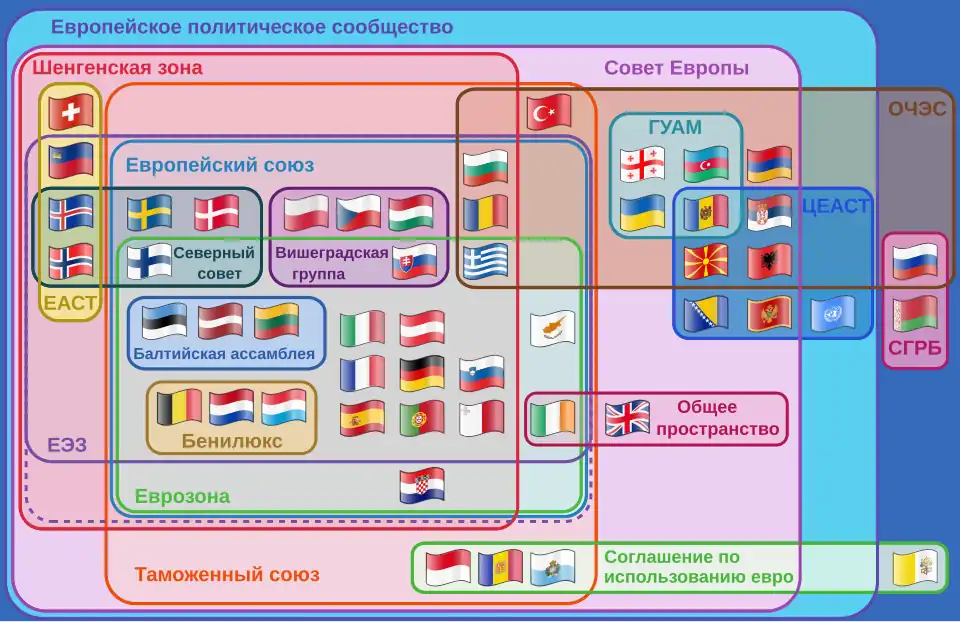 Основные международные объединения в Европе