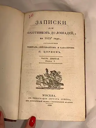 С 1824 года выходил под названием «Записки для охотников до лошадей». В 1826 году сменил назнание на «Записки для охотников до лошадей и конюшенного порядка», а в 1827 — «Записки для охотников до лошадей, содержащие в себе конюшенный порядок».