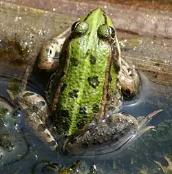 Лягушка — положительное животное в мифологии народа коми. Лягушка не потеряла в процессе христианизации коми своего положительного характера. В мифе о Всемирном потопе она заткнула собою прохудившуюся щель в Ноевом ковчеге[1].