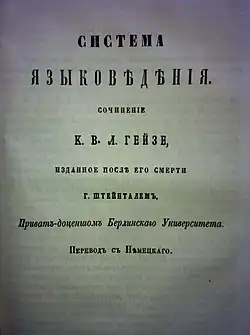 - Система языковедения / Соч. К.В.Л. Гейзе, изд. после его смерти Штейнталем, прив.-доц. Берл. ун-та; Пер. с нем. [авт. предисл.] И. Желтов. Ч. 1-2. — Воронеж: тип. В. Гольдштейна, 1864—1874.