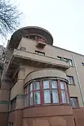 Многоуровневое четырёхэтажное здание представляет собой большой асимметричный особняк в стиле конструктивизм с элементами рационализма, модерна и ар-деко. На каждом этаже первоначально размещались две пятикомнатные квартиры. За свою необычную форму здание получило название «дом-корабль». Состоит из полукруглых застеклённых открытых террас, арок и прямоугольных балконов[3][2]