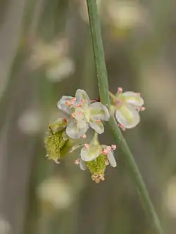 Стволики и старые ветви изогнутые. Молодые побеги длинные, извилисто изогнутые, зеленые или серовато-зеленые, членистые, почти безлистные, осенью почти целиком отмирающие и опадающие, выходят пучками из пазух деревянистых ветвей. Кроме тонких однолетних побегов в кронах этих кустарников формируются так называемые ростовые побеги, которые живут в течение 3-6 лет. Вследствие ежегодного ветвления побегов (новые побеги более высоких порядков отрастают из нижних боковых почек побегов прошлого года), а также ежегодного отмирания большей части каждого нового побега на узлах многолетних ветвей, у некоторых видов образуются своеобразные наплывы или утолщения.