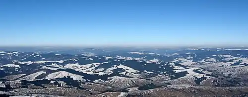 Почти всё пространство занято густыми живописными лесами, с явным преобладанием хвойных пород, которые вечнозелёной чешуёй покрывают вершины и склоны гор. Иногда плотный лесной покров разрывают, вносящие ландшафтное разнообразие в пейзаж, редкие поляны (полонины), используемые трудолюбивыми карпатскими крестьянами под сенокосы и пастбища.