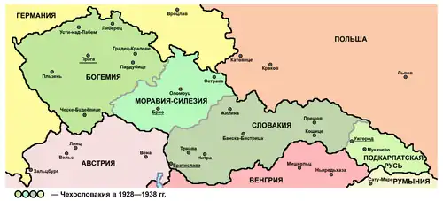 - ↑ Состав окресов Чехословакии на 28 ноября 1938 года, издательство Государственного комитета по статистике, Прага, 1938. Оцифрован и выложен на сайт юридического факультета Карлового университета. Дата обращения: 10 августа 2018. Архивировано 10 августа 2018 года.