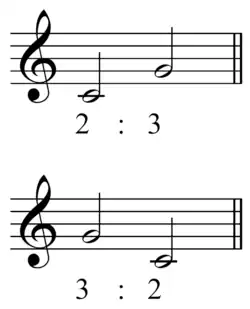 В частности порядок звуков в интервале имеет значение. Например если интервал чистой квинты, (отношение 3/2) — например (до-соль) — будут представлен как <до, соль>, (2:3) то возникнет эффект незавершённости. В то же время как порядок <соль, до> (3:2) будет придавать эффект законченности.