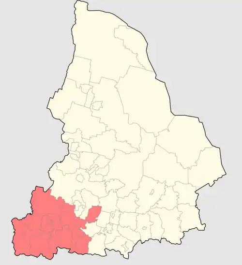 В рамках муниципального устройства области, управленческий округ включает образованные в границах административно-территориальных единиц соответственно 20 муниципальных образований:[1]
