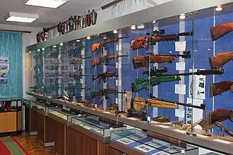 - Зал № 3: витрина, посвящённая выдающемуся конструктору-оружейнику М. Т. Калашникову, снайперское оружие (СВ-98 и СВ-99, СВД и её модификации, штучные карабины «Медведь» и «Тигр» и т. д.), десятки моделей карабина «Сайга».