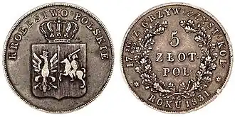 - ↑ Czesław Kamiński, Edmund Kopicki: Katalog monet polskich 1764—1864, KAW, Warszawa 1977