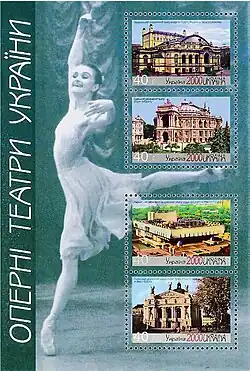 Блок «Оперні театри України»: Київський; Одеський; Харківський; Львівський. с укр. — «Блок «Оперные театры Украины»: | 0,40 0,40 0,40 0,40 гривны |